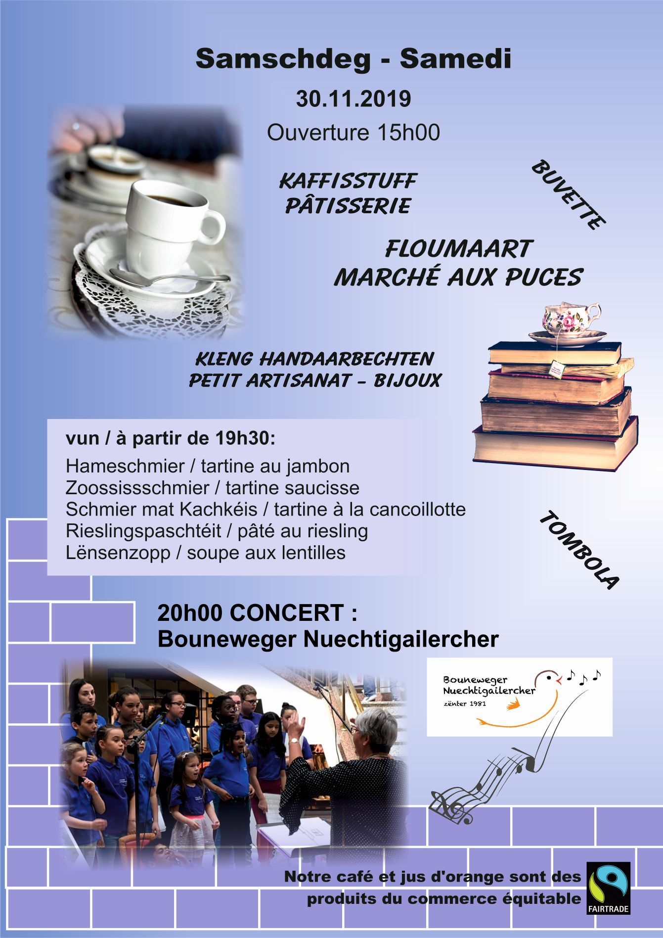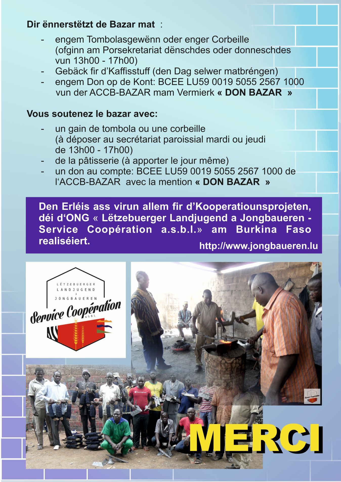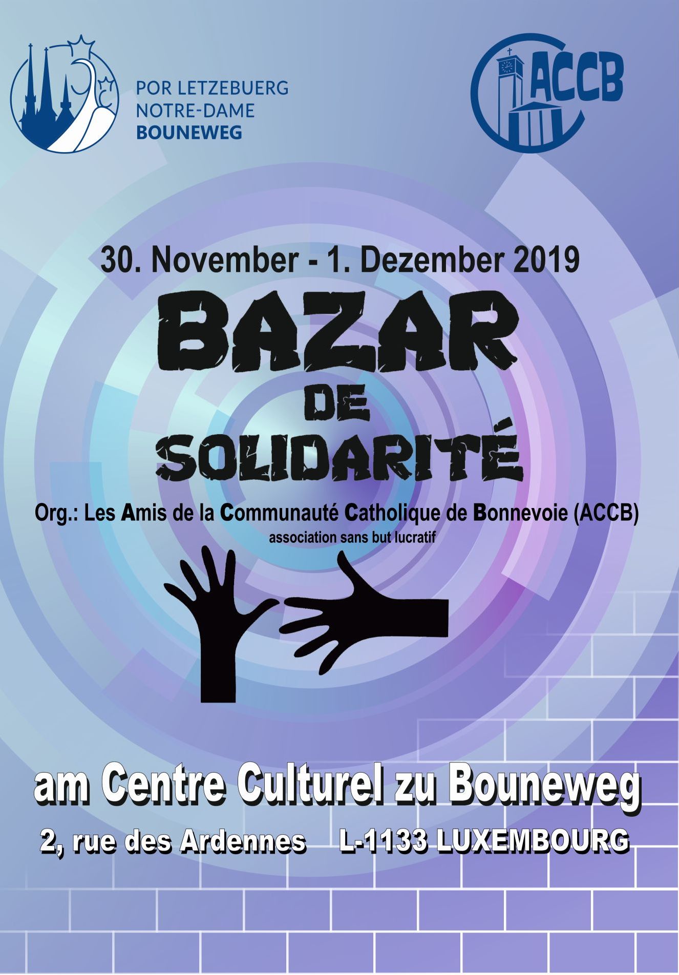- Bazar de solidarité, Centre culturel, Luxembourg-Bonnevoie, rue des Ardennes